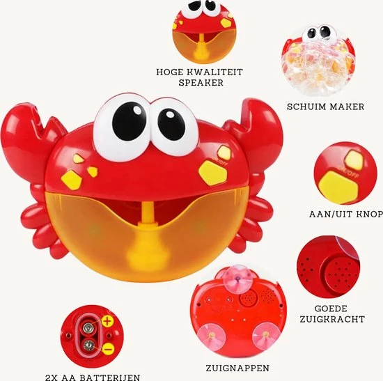 Tover een glimlach op het gezicht van je kind met dit super deluxe badspeelgoed voor een baby vanaf 1 jaar, peuter of kleuter. Zet de krab aan en er komen automatisch bubbels uit de mond van de krab en met de 12 ingebouwde kinderliedjes, kan je kind vrolijk meezingen. Ideaal kinderspeelgoed voor in bad want je kind verveelt zich geen moment!