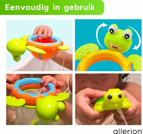 Jonge kinderen hebben altijd interesse in felgekleurd (bad)speelgoed. Met deze speelset wordt fijne motoriek en hand-oog-coördinatie. De vrolijke diertjes zorgen voor extra motivatie om de taken te volbrengen; het vissen van kleine schildpadjes en sprayen van water. Natuurlijk moeten papa en mama het wel eerst even voordoen.
