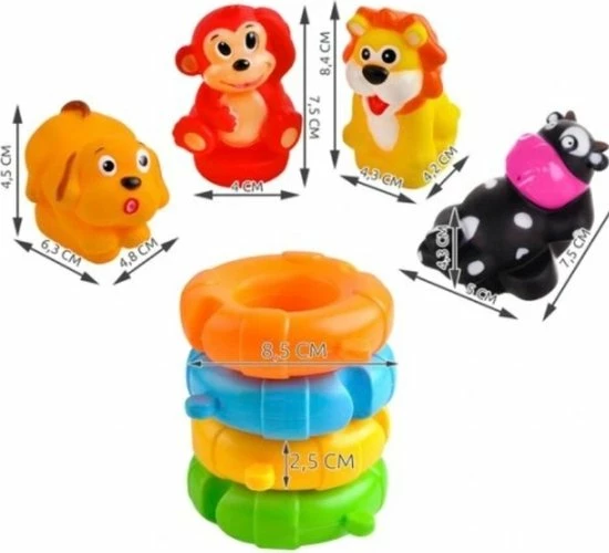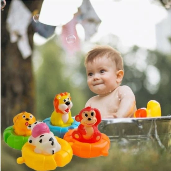 Met ons badspeelgoed kunnen dagelijkse baden worden veranderd in een interessant spektakel. De kinderen ontwikkelen een grote verbeeldingskracht en kunnen verschillende onderwerpen alleen of als stel nabootsen. Bovendien bevordert het knijpen en knijpen van de rubberen dieren de motoriek en moedigt het kinderen aan zich in het bad te bewegen. Dus je wordt moe en slaap goed na het baden.
