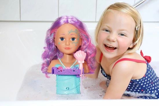 Nu kun je van de badkuip een onderwaterkapsalon maken met het BABY born Sister Zeemeermin Stylinghoofd.