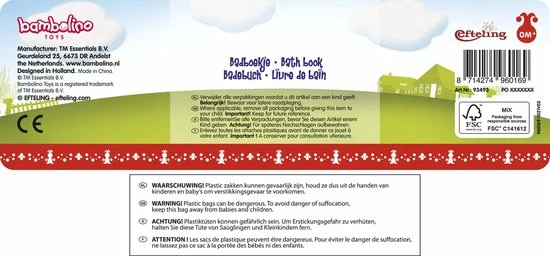 Het boekje zelf mag gerust nat worden, want daar kan het goed tegen, het is namelijk gemaakt van kunststof. Na het badderen goed laten drogen en het badboekje kan telkens weer opnieuw worden gebruikt.