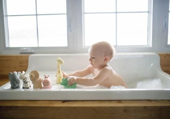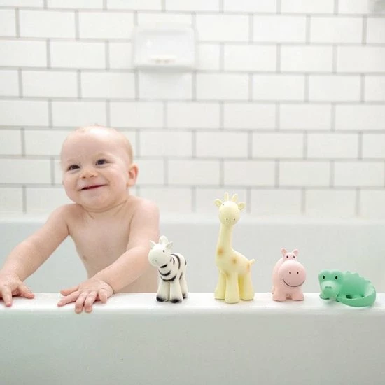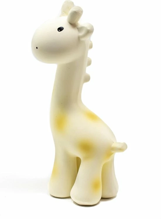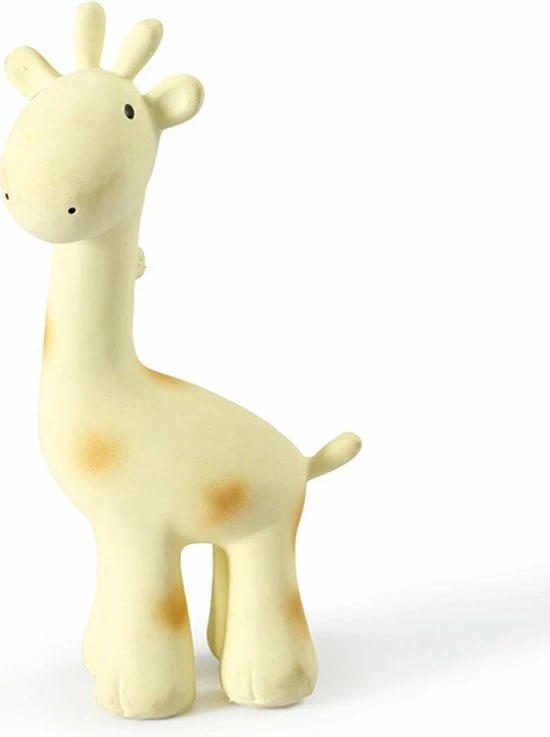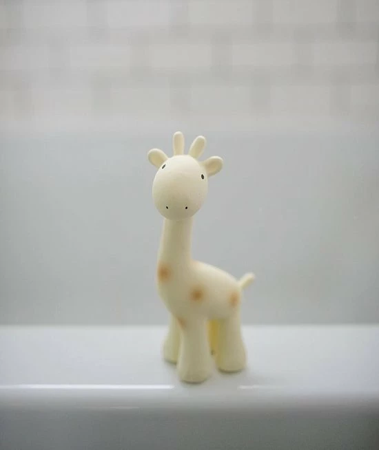 Dit badspeeltje, een schattige giraf met belletje in natuurlijk latex is ideaal om mee te spelen en in te bijten. Het badspeelgoed heeft geen gaatje, waardoor bacteriën en schimmels geen kans hebben zich te nestelen. Het speeltje ziet er leuk uit, is zacht en flexibel en past perfect in kleine handjes.