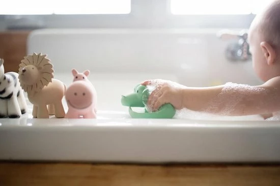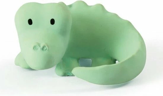Dit badspeeltje, een schattige krokodil met belletje in natuurlijk latex is ideaal om mee te spelen en in te bijten. Het badspeelgoed heeft geen gaatje, waardoor bacteriën en schimmels geen kans hebben zich te nestelen. Het speeltje ziet er leuk uit, is zacht en flexibel en past perfect in kleine handjes.