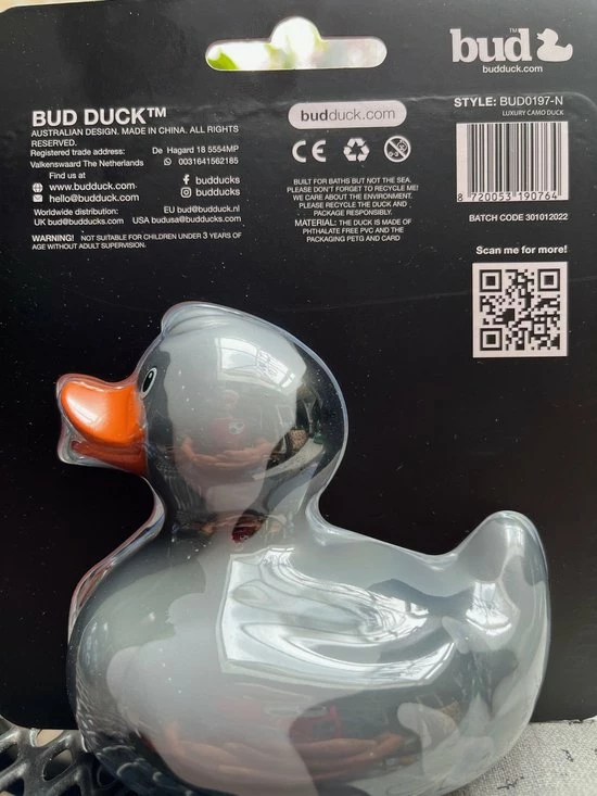 BUDDUCK.COM BUD Camo Duck Badeendje Camouflage Van Budduck In Zwart Grijs En Wit