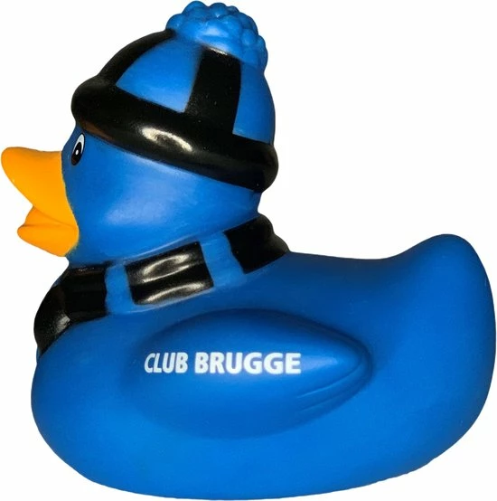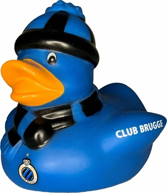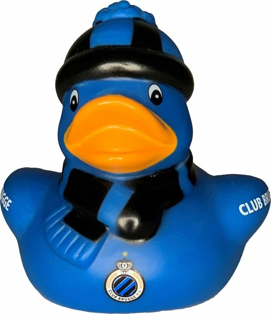 Tijd voor een warm bad met deze badeend van Club Brugge! De eend wordt geleverd met karakterische Brugse kleuren, een Brugse muts en sjaal. Op de voorkant van de sjaal staat het logo.
