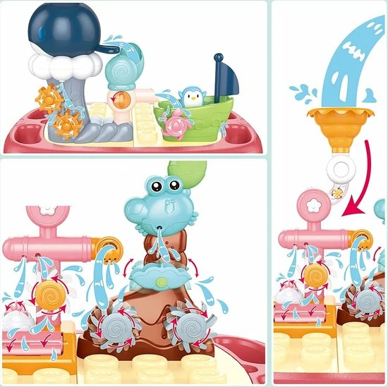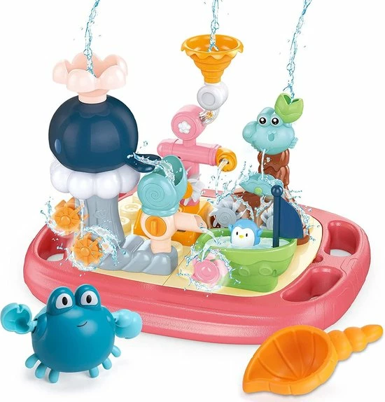 Met dit luxe drijvende waterpark, zorg je voor uren speelplezier in bad. Door ons badspeelgoed kunnen kinderen spelenderwijs kennis maken met de loop van het water, zwaartekracht en snelheid.