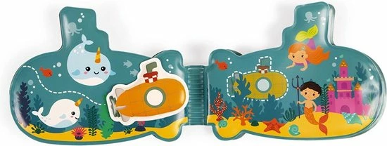 1 badboekje en 1 onderzeeër met figuur van schuimrubber De onderzeeër gaat op avontuur! Stuur hem naar de dieptes van de zee om zeedieren te ontmoeten en wie weet, misschien ontdek je wel het koninkrijk van de zeemeerminnen!