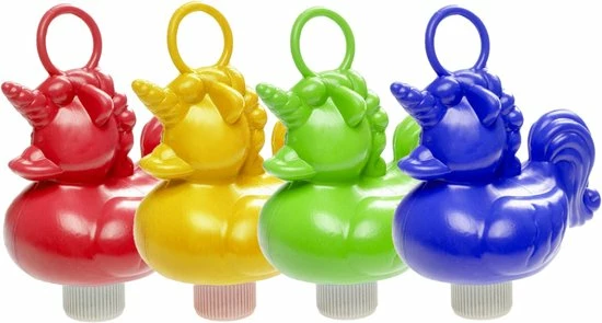 Set van 4x stuks eenhoorn badeendjes badspeelgoed in de kleuren rood, geel, groen en donkerblauw 15 cm. Eenhoorn badeendjes met een oogje op de rug waardoor je deze eendjes ook kan gebruiken voor het leuke hengelspel. Deze eendjes zorgen voor veel plezier in bad of maak er een wedstrijdje van met het hengelspel. Ook gewoon leuk als uitdeelcadeautje voor op een kinderfeestje. Afmeting: 15 x 6 x 7 cm. Materiaal: zacht kunststof.