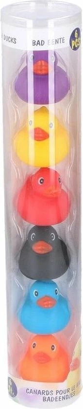 Merkloos 12x Stuks Rubberen Badeendjes Gekleurd In Koker 6 Cm – Bad Speeltjes