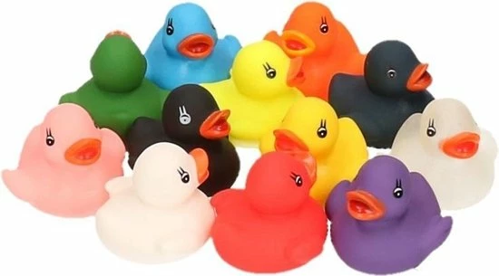 36x Bad eendjes gekleurd. Dit pakket bevat 3 sets van 12 verschillende kleuren bad eendjes. De bad eendjes hebben een formaat van ongeveer 6 x 6 x 5 cm groot.