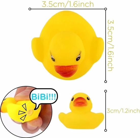 - 【Klein formaat】 De rubberen eend meet 3,5×3,5x3cm, klein formaat voor kinderen om in hun handen te grijpen.