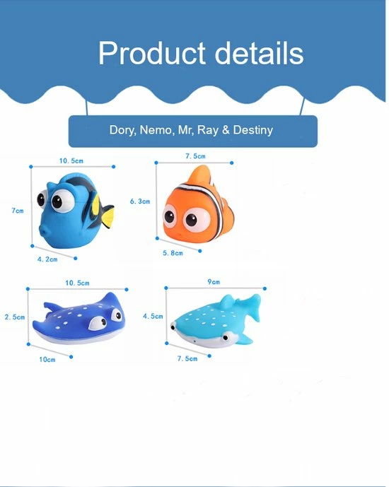- 4 fish based on Nemo, cnsisting of: Nemo, Dory, Mr. Ray and Destiny (finding Dory)
