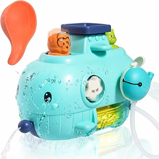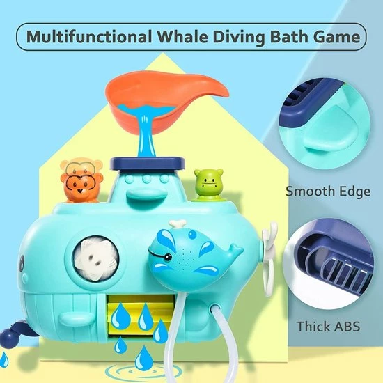 - Interessant badspeelgoed, meerdere manieren om te spelen: inclusief walvisvormig onderwaterbadspeelgoed en waterschep. Wanneer kinderen water in het speelgoed gieten, begint het deel van het speelgoed te draaien en gaat het nijlpaard drijven. Door op de aap te drukken, spuit hij water. Het kind kan de propeller draaien, wanneer de mond van de walvis naar beneden wordt getrokken, zal het ook water spuiten. . . Meer manieren om te spelen, wachtend op kinderen om te ontdekken.