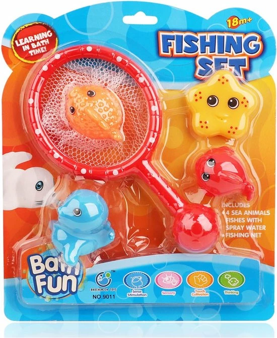 Deze vis spel met 4 verschillende zeedieren is ontzettend leuk voor in bad. Vang de vier zeedieren met de visnet!