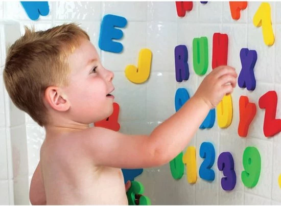 Letters en cijfers plakken vast aan de rand van het bad of de muur wanneer ze nat zijn. 26 drijvende letters (A-Z) en 10 drijvende nummers (0-9). Letters en cijfers plakken vast aan de rand van het bad of de muur wanneer ze nat zijn. 26 drijvende letters (A-Z) en 10 drijvende nummers (0-9). De letters en cijfers zijn gemaakt van zacht, duurzaam en niet giftig schuim. Geschikt voor kindjes vanaf 24 maanden.