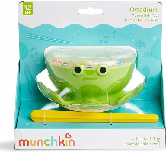 Deze Munchkin Octodrum zorgt voor uren speelplezier. Het is 3 in 1. Een babytrommel, tamboerijn én een doolhofspel.De trommel is in de vorm van een octopus welke blijft drijven op het water. Ook kan het door middel van zuignappen tegen het bad worden bevestigd.