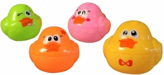 Badderen wordt nu nog leuker met deze vier badeenjes! Niet alleen dobberen ze heerlijk door het zeepsop, je kunt ze ook stapelen. Zo heb jij nog meer speelplezier in het bad!