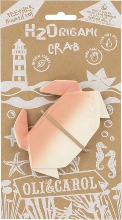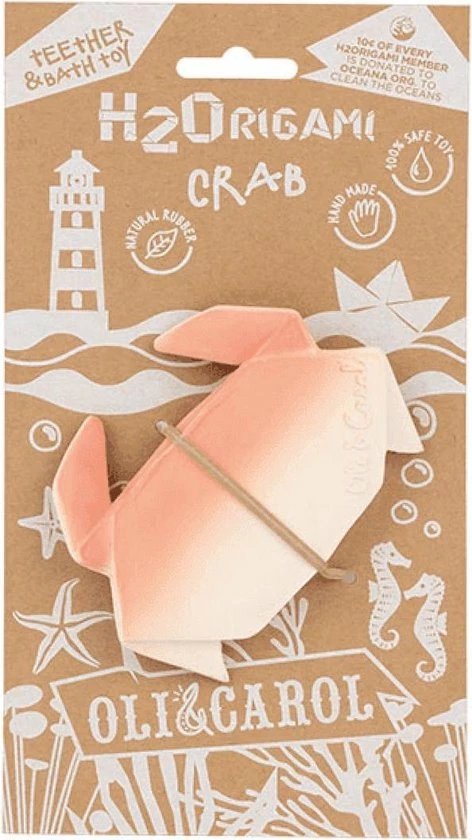 Badspeeltje krab om lekker mee in bad te spelen, door in bad te spelen met oceaan dieren maak je kinderen bewust welke dieren en allemaal in de zee leven en van elk verkocht badspeeltje wordt 0,10 € gedoneerd aan de Ocean org, welke zich bezighoudt met het verwijderen van plastic uit de oceaan. Het speeltje is gemaakt van 100% natuurlijk rubber, gecertificeerd eco-vriendelijk en non-toxic. BPA, PVC Phthalate and Nitrosamine vrij en gekleurd met voedingsmiddelen kleurstof, daarbij heeft de speeltje geen ventiel dus kunnen er geen bacterien in komen waardoor deze veilig en hygienisch is voor baby’s. Na gebruik afspoelen me water en afdrogen en niet in direct zonlicht bewaren, de krab is verpakt op een 100% gerecycled kartonnen verpakking.