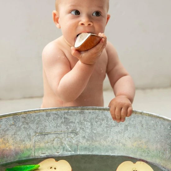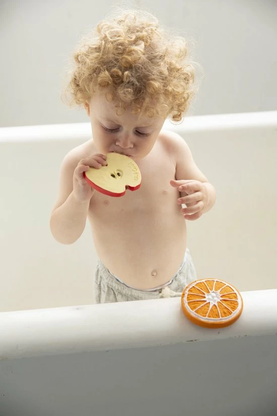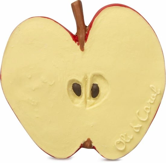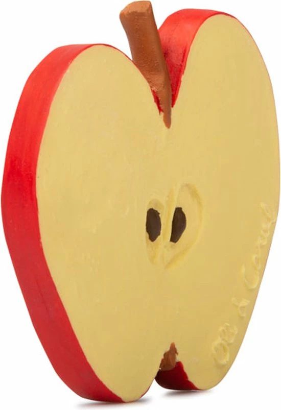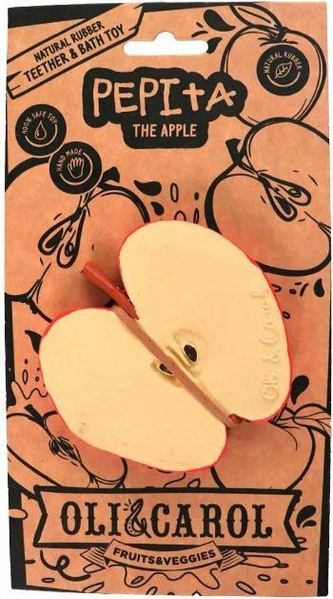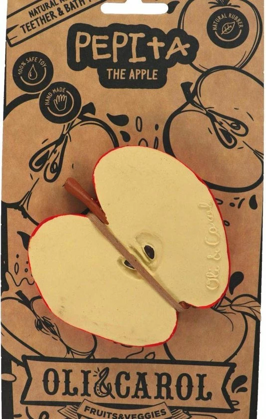 Haaa, zo leuk deze rubberen appel Pepita the Apple van het Spaanse merk Oli & Carol! Ideaal om mee in bad te nemen. Het bijtspeeltje is gemaakt van rubber dat afkomstig is van de Hevea bomen. Er zitten geen gaten in het ontwerp waardoor bacteriën en schimmels geen kans hebben zich te nestelen. De speeltjes zijn met de hand geverfd en helemaal eco-vriendelijk.