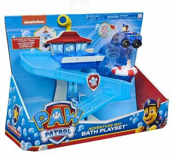 Schiet supersnel te hulp met Chase en de PAW Patrol Avonturenbaai badspeelset. Met deze speelset breng je de spanning van PAW Patrol naar je bad. Met een Avonturenbaai-toren die je op een tegel kunt plakken, een lichtgevend Chase-voertuig en een Chickaletta-figuur dat drijft, wordt badtijd nu ook speeltijd. Dankzij de zuignappen aan de achterkant plak je de speelset makkelijk op de tegels en blijft de set goed zitten. Als Chickaletta in de problemen komt in je bad, race je om haar te redden.