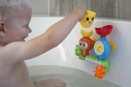 Het waterspeelgoed is interactief en zal je kleine eindeloos vermaken. Wordt geleverd met een waterbakje waarmee je kind water uit het bad zal pakken en toevoegen aan het badspeeltje. Hierdoor ontstaan er meerdere waterstralen en komen diverse onderdelen in beweging.