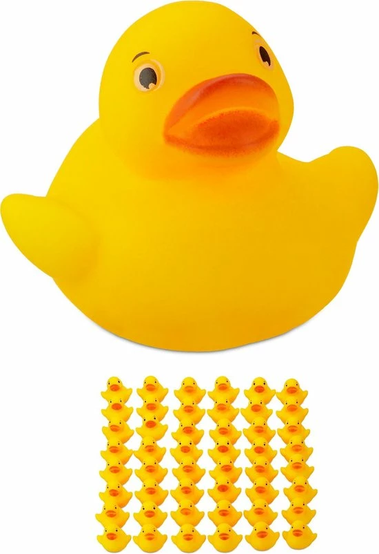 In deze set ontvang je 48 schattige badeendjes en kan de badkuip omgetoverd worden tot een eendenvijver. De rubberen eendjes maken zowel kinderen als ook volwassenen gelukkig en zorgen rechtop zwemmend voor een groot plezier in bad. Met een beetje oefening kan je de eendjes zelfs laten piepen. De badfiguurtjes kunnen als grappige decoratie gebruikt worden of als uitdeelcadeautje aan de kleine bezoekers van kinderverjaardagen meegegeven worden.