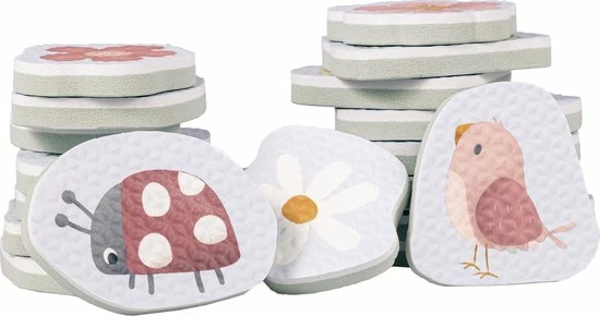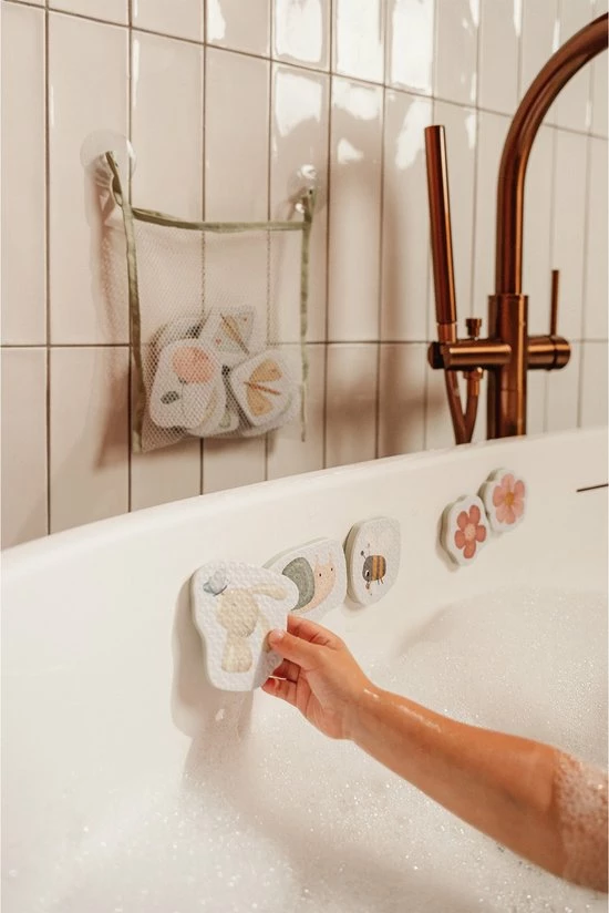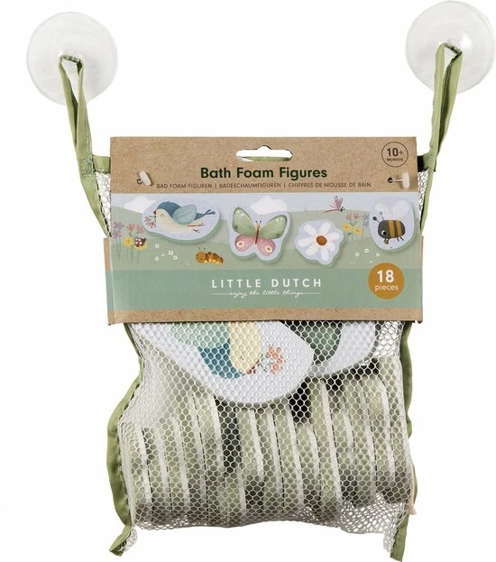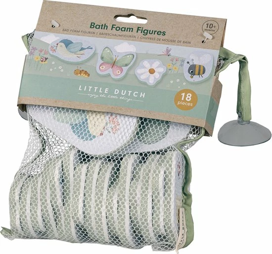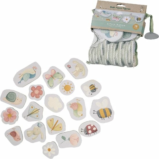 Lekker spelen in bad met deze vrolijke foam badfiguren van Little Dutch! In deze set zitten 18 figuren, uitgevoerd in de roze kleurstelling van het Flowers and Butterflies thema. De badfiguren zijn gemaakt van foam. Maak ze nat en plak ze op de badrand of op de tegels! Handig verpakt in een opbergzakje met zuignappen.