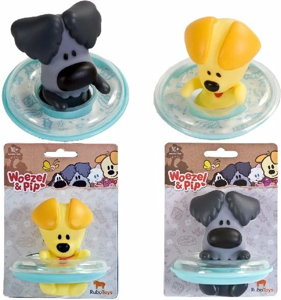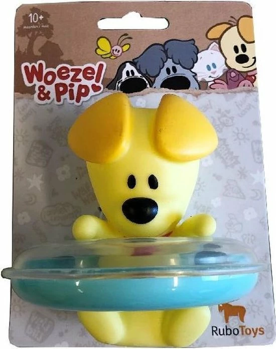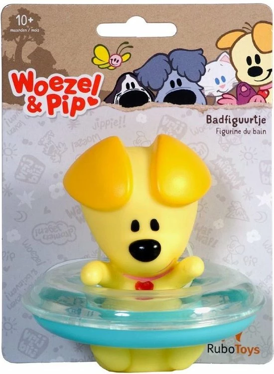 Woezel en Pip badfiguur, voorzien van drijfring. Flexibel kunststof, gemakkelijk af te drogen na het badderen. Wordt 2 assorti geleverd: kies uit Woezel of Pip, maar leuker nog is allebei! Verpakt op een blisterkaart. Geschikt voor kinderen vanaf 12 maanden.