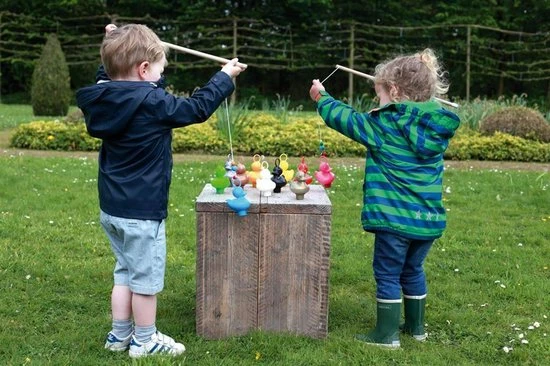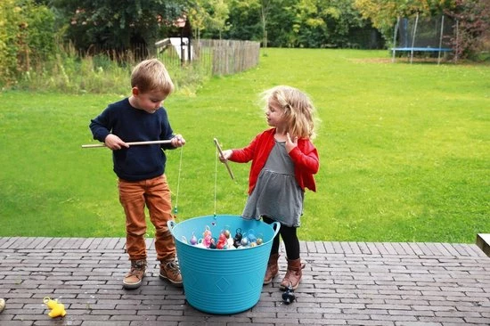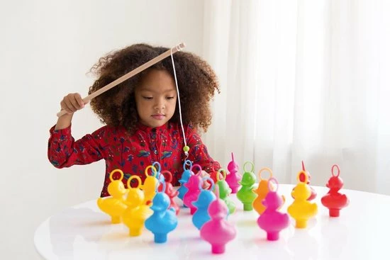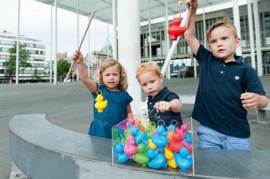 Welk kind houdt er niet van de kermis? Met deze set van 6 leuke eendjes met 2 hengels breng je de kermis bij je thuis! Uren opvisplezier, binnen of buiten, in bad of op het droge. Leer de kinderen kleuren herkennen door ze een bepaalde kleur te laten vissen. Je kan met een waterproof stift het eendje onderaan punten geven om het spel compleet te maken.