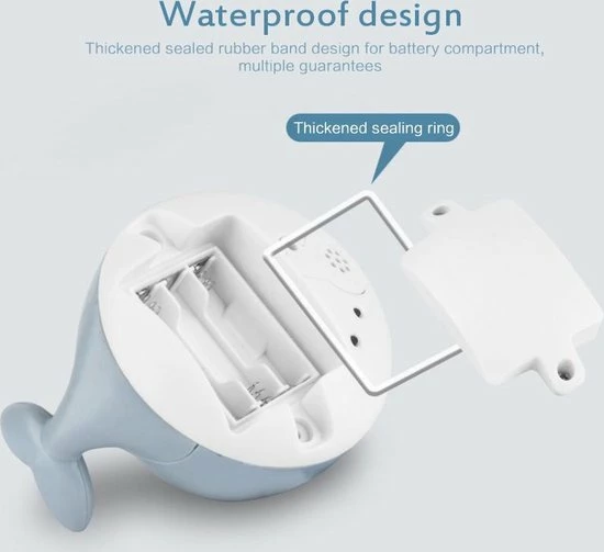 Met dit speeltje in bad, vermaakt iedereen zich. Wally de walvis blijft drijven en sproeit een fontein uit zijn bovenkant. Hij werkt op 3 AA batterijen en is waterdicht. Eenmal in het water zal hij blijven drijven en veranderen van kleur.