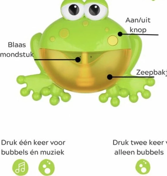 De Kikker Bellenblaas machine met muziek (12 liedjes) waar zowel jong als oud veel plezier aan zullen beleven.