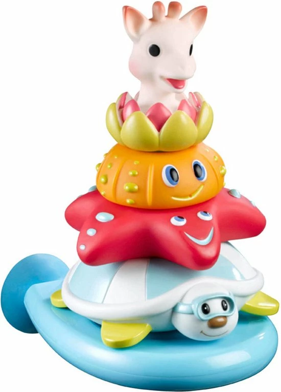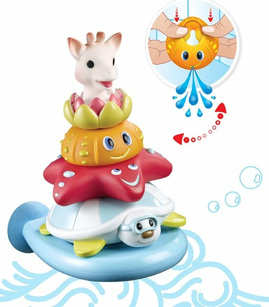 Sophie de Giraf splash and surf piramide om uw kindje in bad te vermaken! Een piramide waaraan van alles ontdekt kan worden en die de ontwikkeling van de zintuigen van baby stimuleert.