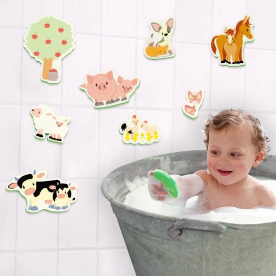 Lekker in bad spelen wordt nog leuker met de vriendjes van Studio Circus. Deze foamfiguren blijven plakken op de badrand of tegelwand en drijven in het water. Na het spelen gemakkelijk op te bergen in het netje dat met de zuignappen aan een glad oppervlak kan worden vastgemaakt.