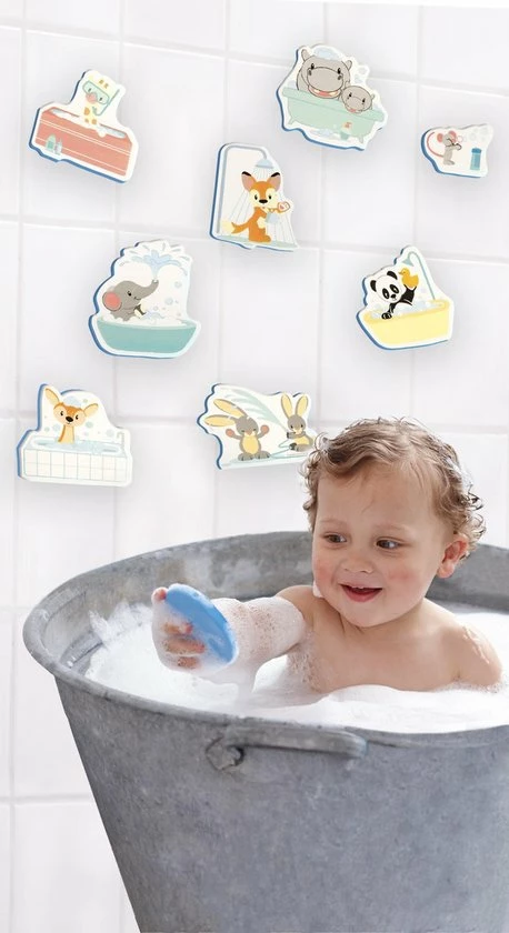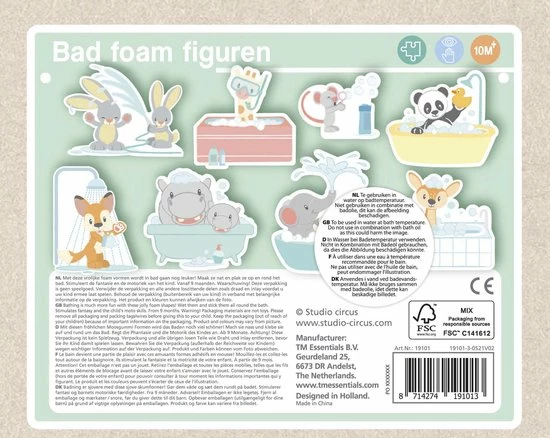 In bad spelen wordt nog leuker met deze boerderijvriendjes van Studio Circus. De boerderij foamfiguren blijven plakken op de badrand of tegelwand en drijven in het water. Na het spelen gemakkelijk op te bergen in het netje dat met de zuignappen aan een glad oppervlak kan worden vastgemaakt.