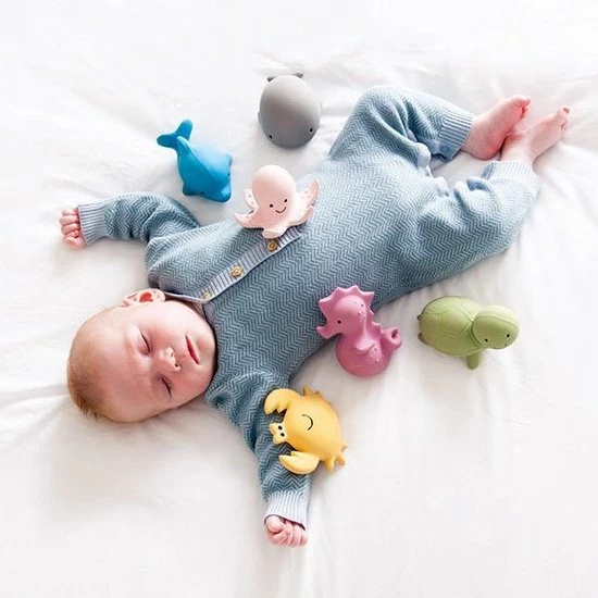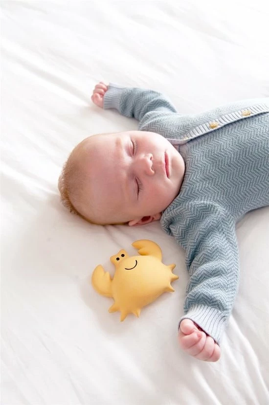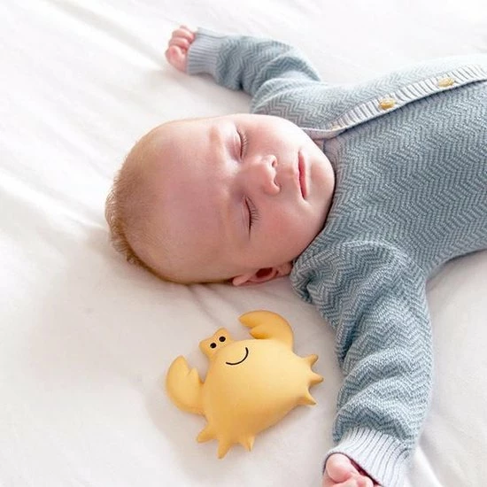 Dit badspeeltje, een schattige krab met belletje in natuurlijk latex is ideaal om mee te spelen en in te bijten. Het badspeelgoed heeft geen gaatje, waardoor bacteriën en schimmels geen kans hebben zich te nestelen. Het speeltje ziet er leuk uit, is zacht en flexibel en past perfect in kleine handjes.