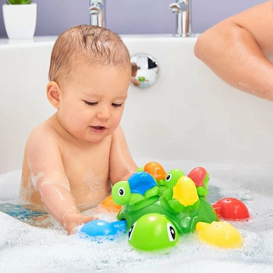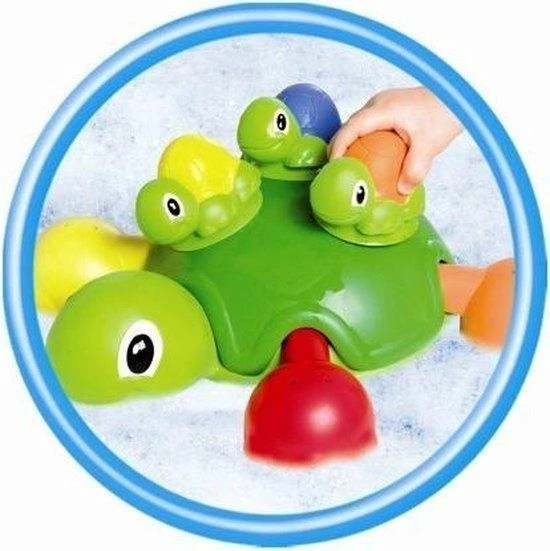 Topspeelgoed voor peutertjes in bad: de kleine schildpadjes kleven op de rand, en de drijvende poten zijn kleine vergietjes waar het water in verschillende snelheden en vormen doorheen loopt. Bovendien ook puzzelplezier, om de hele schildpad terug in elkaar te knutselen.