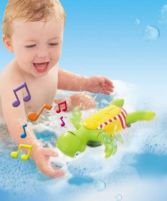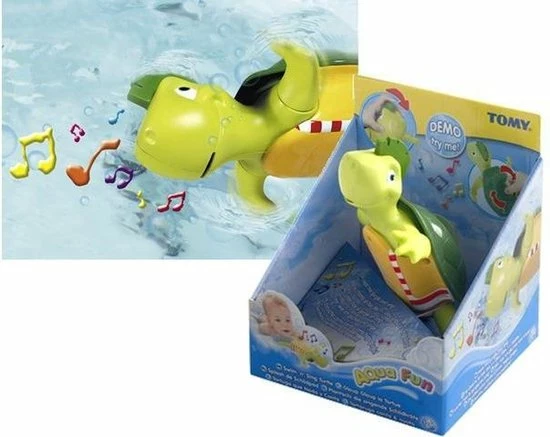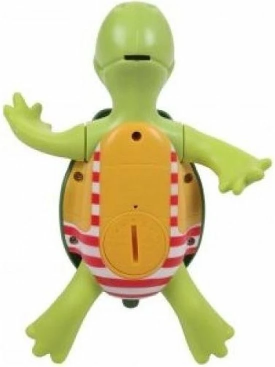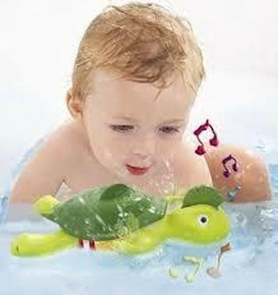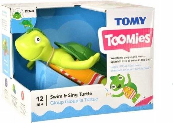 Zie me gorgelen en neuriën … plons! De TOMY Zwem- en Zing Schildpad heeft een mooi rood-witte badpak en ze zwemt graag met jou in bad! Kijk hoe mijn armen rond en rond gaan als je me opwindt. Kijk hoe ik vrolijk door het bad zwem! Druk op mijn hoofd en luister naar mijn vrolijke deuntjes.
