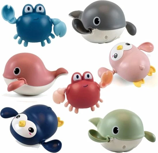 Spetter, spatter, spater! Met deze badspeeltjes wordt het badje een groot feest. Wind het diertje op en kijk eens hoe snel ‘ie zwemt. Kan jij ‘m bijhouden?