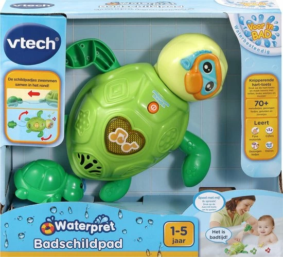 Trek aan de babyschildpad om de flippers op te winden en zie mamaschildpad samen met haar baby rondjes zwemmen! Druk op de knipperende hart-toets en luister naar vrolijke zinnetjes, melodietjes en gezongen liedjes.