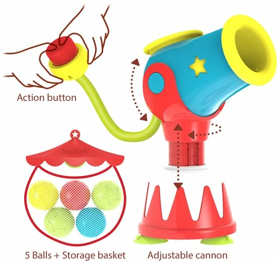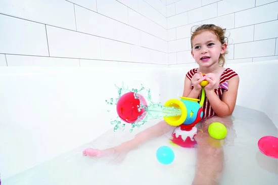 Het Ball Blaster water kanon van het merk Yookidoo zorgt voor veel plezier in bad of het zwembad. Stop een bal in het kanon en geef druk met het handpompje. En schiet de bal weg of pak het bijgeleverde item om de bal doorheen te schieten. Echt een uitdaging voor je kleintje!